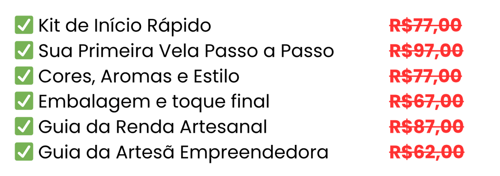 Assista aulas curtas e práticas, com demonstrações claras de cada etapa, desde a montagem do kit até o preparo da primeira vela.