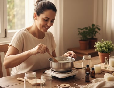 Um passo a passo didático que mostra na prática como derreter a cera, misturar essência e envazar suas velas com perfeição.