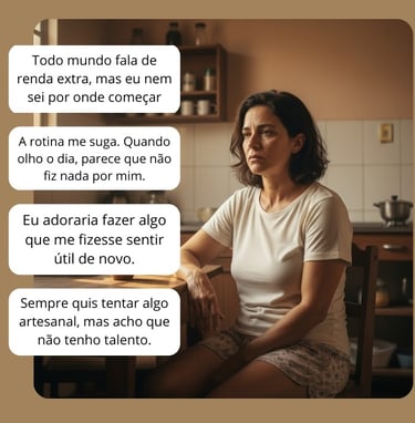 Não importa se você nunca fez nada artesanal antes eu vou te mostrar que é possível começar do zero, criar algo lindo e até ganhar um dinheirinho extra com o que você faz com amor.